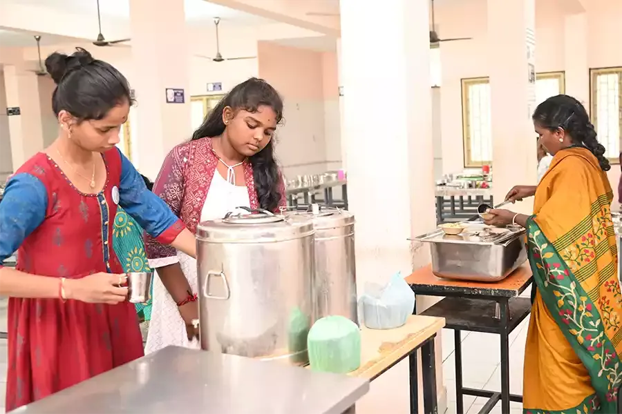 The hostel dining area is well-maintained, ensuring student comfort and enhancing the overall campus experience, creating a home away from home for all students.